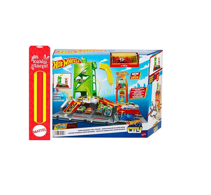 Ετοιμαστείτε για παιχνίδι με φορτισμένο κομμάτι με το πρατήριο καυσίμων Hot Wheels City Super Recharge! Αυτό το διαδραστικό σετ παιχνιδιού διαθέτει μια επανατοποθετούμενη λαβή φόρτισης που μοιάζει με EV, την οποία τα παιδιά εισάγουν σε καθορισμένα σημεία για να ενεργοποιήσουν εντυπωσιακές λεπτομέρειες, όπως αλλαγές πινακίδων, ανυψωτικά αυτοκινήτων και εκτοξευτές. Παρκάρετε 10 οχήματα 1:64 στο σετ για πρόσθετη αφήγηση ή αποθήκευση. περιλαμβάνεται ένα αυτοκίνητο Hot Wheels, επιπλέον οχήματα πωλούνται χωριστά. Το Super Recharge Fuel Station συνδέεται με άλλα σετ και πίστες Hot Wheels, έτσι ώστε τα παιδιά να μπορούν να δημιουργήσουν το δικό τους μοναδικό αστικό τοπίο για περιπέτειες απεριόριστης διάρκειας.