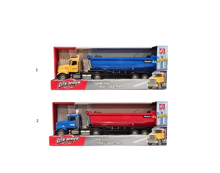 Φορτηγό, σε κλίμακα 1:18, με ανατρεπόμενη καρότσα, φώτα που ανάβουν και αληθοφανείς ήχους. Λειτουργεί με 3 μπαταρίες AG13 (περιέχονται) Τυχαία επιλογή χρώματος. Διαστάσεις παιχνιδιού: 42x8x10cm Διαστάσεις συσκευασίας: 45x17x10cm