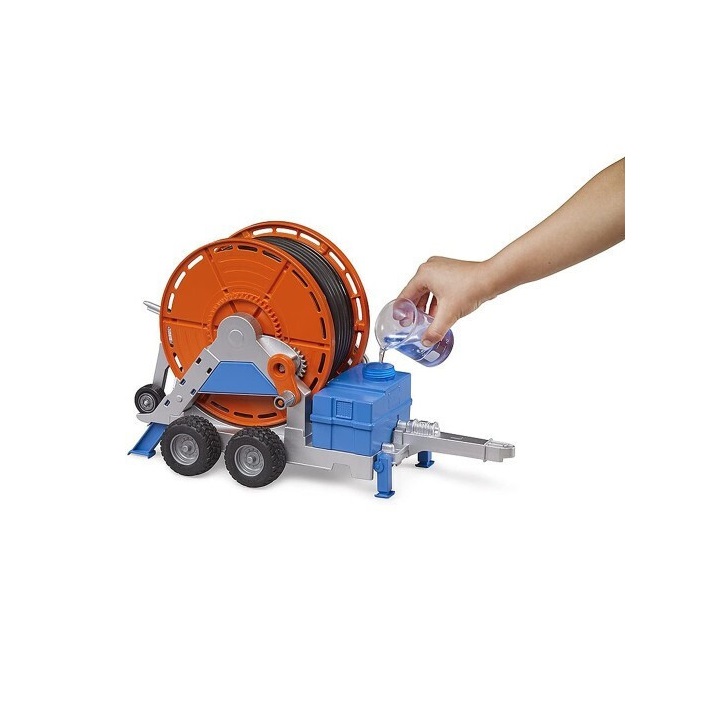 Είτε αθλητικοί χώροι, φυτώρια, οπωρώνες ή άλλες μεγάλες περιοχές όπου απαιτείται σταθερή και σταθερή παροχή νερού, τα ρυμουλκούμενα άρδευσης έχουν τον τόπο χρήσης τους. Αυτό το σημαντικό μηχάνημα για επιτυχημένη γεωργία είναι τώρα διαθέσιμο στην εκτεταμένη γκάμα της BRUDER. Οι νέοι αγρότες μπορούν να χρησιμοποιήσουν τη μανιβέλα για να ξετυλίξουν έναν εύκαμπτο σωλήνα μήκους 1,8 μέτρων, στον οποίο είναι προσαρτημένο ένα φορτηγό καταιονισμού με ακρίβεια λεπτομερειών. Πιστό στο σύνθημα BRUDER «Ακριβώς όπως το πραγματικό», διαθέτει μια δεξαμενή με λειτουργική αντλία. Το σύστημα αντλίας επιτρέπει την εύκολη και ρεαλιστική διανομή του νερού. Αυτό το συναρπαστικό τρέιλερ άρδευσης μπορεί να ρυμουλκηθεί από όλα τα τρακτέρ BRUDER από τον κόσμο με θέμα τη γεωργία.