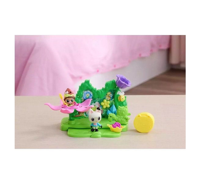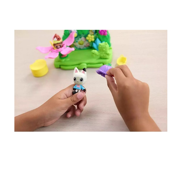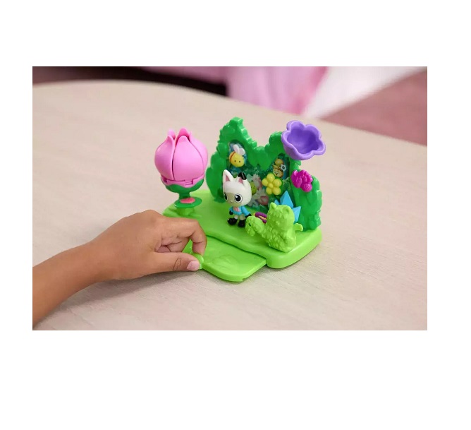 Ανακαλύψτε τη μαγεία του μαγικού κήπου από τον κόσμο του Gabby’s Dollhouse. Αυτό το πολύχρωμο και διαδραστικό σετ παιχνιδιού περιλαμβάνει 12 κομμάτια, με χαριτωμένες φιγούρες, λουλούδια, μια κούνια και διακοσμητικά εμπνευσμένα από τη φύση.