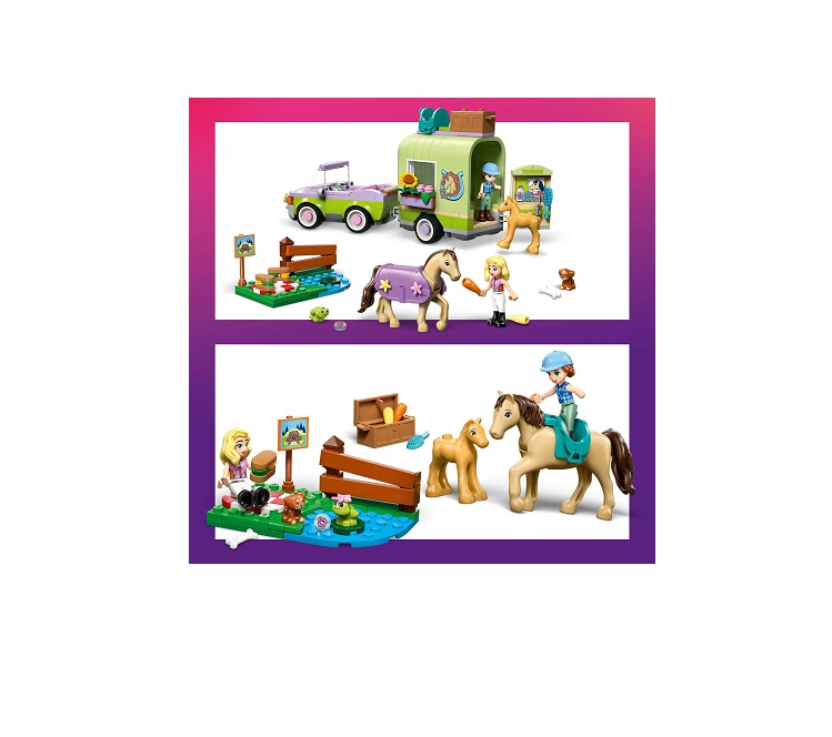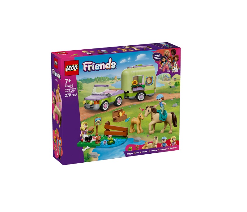. Δώστε στα παιδιά ηλικίας 7 ετών και άνω την ευκαιρία να απολαύσουν άφθονο παιχνίδι ρόλων με φροντίδα ζώων με το παιχνίδι κατασκευής LEGO Friends Horse & Baby Foal Trailer (42695). Αυτό το σετ για λάτρεις αλόγων διαθέτει 2 μίνι κούκλες και φιγούρες αλόγου, πουλαριού, κουταβιού και βατράχου. Εξερευνήστε τη φροντίδα των ζώων με τα λεπτομερή αξεσουάρ και περιποιηθείτε τα άλογα, μεταφέρετέ τα με το τρέιλερ και πηδήξτε το εμπόδιο με το άλογο. Αγόρια και κορίτσια θα απολαύσουν τους διάφορους τρόπους παιχνιδιού με αυτό το σετ με ζώα. Μπορούν να δημιουργήσουν ιστορίες για την Autumn και τη Matilda καθώς οδηγούν το αυτοκίνητο. Ανοίξτε το τρέιλερ και χαιρετήστε το άλογο και το πουλάρι. Μετά, σελώστε το άλογο και πηγαίνετε για ιππασία. Το μοντέλο διαθέτει μια μικρή βοηθητική κατασκευή με χώρο για πικνίκ, πινακίδα, λίμνη και φράχτη για άλματα. Αυτό το σετ είναι υπέροχο δώρο για λάτρεις των αλόγων ή διασκεδαστικό δώρο γενεθλίων για παιδιά που αγαπούν τα σετ παιχνιδιών με ζώα. Και με την εφαρμογή LEGO Builder, τα παιδιά απολαμβάνουν μια απλή κατασκευή καθώς ζουμάρουν και περιστρέφουν σετ χρησιμοποιώντας 3D οδηγίες, αποθηκεύουν σετ και παρακολουθούν την πρόοδο. Το σετ περιέχει 279 τεμάχια.