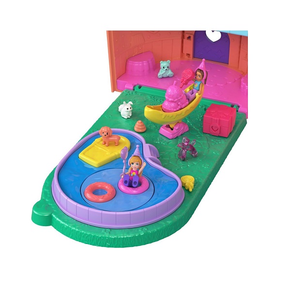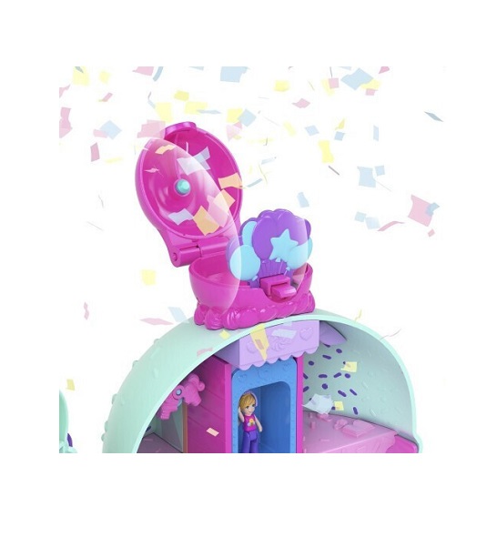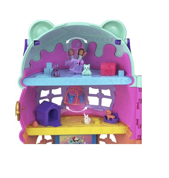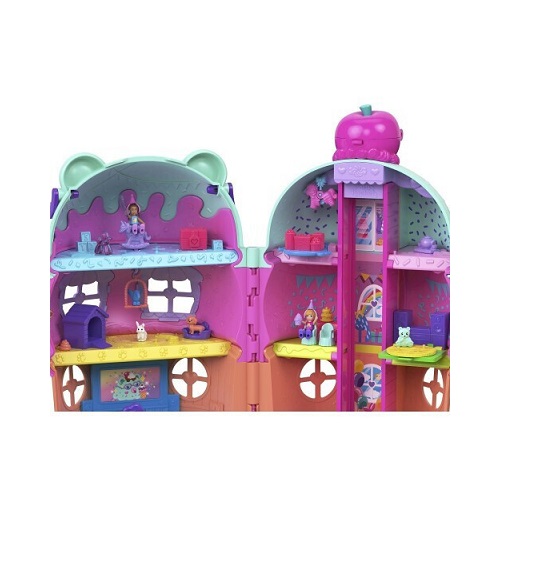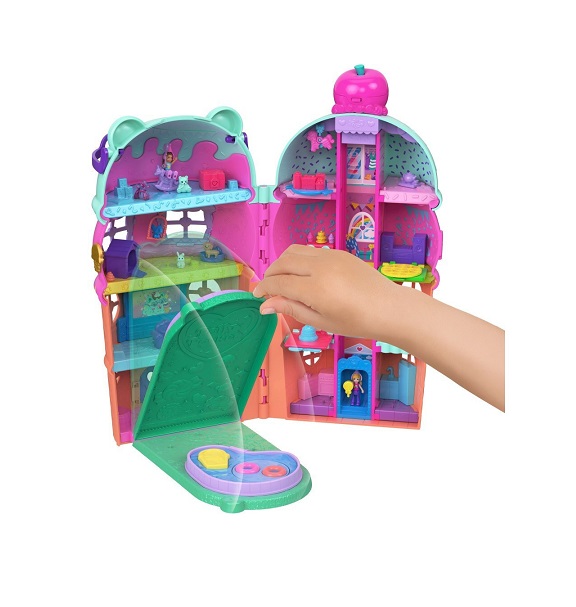 Ώρα για πάρτι μέσα σε ένα παγωτό κυπελλάκι. Το Polly Pocket Gelateria House έχει σχεδιαστεί σαν ένα λαχταριστό παγωτό με θέμα ένα χαριτωμένο αρκουδάκι. Τα γυαλιά-καρδιά του αρκούδου δεν είναι μόνο διακοσμητικά, αλλά λειτουργούν και ως λαβή μεταφοράς, για να το παίρνεις παντού μαζί σου με ευκολία. Καθώς ανεβαίνεις με το ασανσέρ μέχρι το κερασάκι στην κορυφή, σε περιμένει μια απρόσμενη έκπληξη: κονφετί πέφτει από το κεράσι, αποκαλύπτοντας τέσσερις θεματικούς ορόφους γεμάτους διασκέδαση και φαντασία. Κάθε επίπεδο προσφέρει μια ξεχωριστή εμπειρία: Παιδικός σταθμός για ζωάκια. Κουζίνα γεμάτη αξεσουάρ. Τεμπέλικος ποταμός για στιγμές χαλάρωσης. Βόλτα με αλογάκι που κινεί το κλουβί του πουλιού. Το σετ περιλαμβάνει: 2 μικροσκοπικές κούκλες Πάνω από 30 αξεσουάρ, όπως ζωάκια, διακοσμητικά και αντικείμενα για αλληλεπίδραση. Το Polly Pocket Gelateria House συνδυάζει τη μαγεία του παγωτού με τη χαρά του παιχνιδιού σε κάθε γωνιά του.